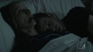 El joven no entiende mucho lo que está ocurriendo y limpia todo y lleva a su madre a su cama. Como si fuese que no paso nada y está descansando, aunque es muy notorio su estado.
