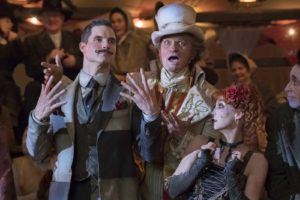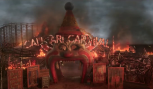 Así fue como terminaron en el carnaval haciéndose pasar por fenómenos. Violet y Klaus se disfrazan de un fenómeno de dos cabezas y Sunny de la beba lobo, aunque Olaf los termina descubriendo y luego de incendiar el lugar se los lleva con él. El problema es separar a los hermanos: él tiene a Sunny cautiva mientras que a Klaus y a Violet los lanza dentro de una caravana a una pendiente, yhasta la próxima temporada no sabremos que pasará.