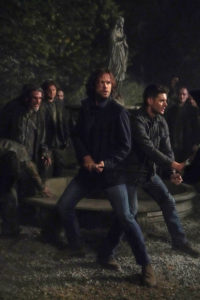 Robert Singer: Arrancamos donde habíamos dejado. El episodio comienza momentos después del final de la temporada 14 y los muchachos están en un verdadero problema. Cuando vi lo que hizo [el director del final de la temporada 14] Phil Sgriccia, le dije: «Muchas gracias, Phil. Va a ser muy interesante ver cómo salimos de esta». Pero creo que se nos ocurrió una manera divertida de resolverlo. Probablemente nos llevará tres episodios resolver ese final de temporada. Ciertamente tenemos algunas cosas que arreglar en la relación entre Dean y Castiel [interpretado por Misha Collins], que se fracturó.