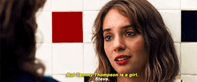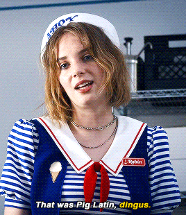 A pesar de que muchos de nosotros hemos caído rendidos una y otra vez a los pies de Steve Harrington y su hermoso cabello, ella no puede parar de burlarse de él, de sus fracasos y de su extraña amistad con niños mucho más pequeños que él.