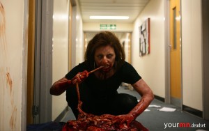 Lo interesante es que debido al comportamiento de los zombies, mucho más cerca de los infectados que proponía Danny Boyle en su Exterminio/28 Días Después, podríamos decir que Dead Set es una especie de spin off de la película anteriormente citada.