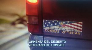 Como verás, la camioneta de Tommy tiene una calcomanía importante: él es veterano de guerra, y de una bastante polémica como fue La guerra del Golfo, que duró desde el 2 de agosto de 1990 al 28 de febrero de 1991, y que más comúnmente denominada Tormenta del Desierto.