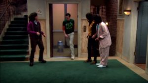 El ascensor casi que es un personaje en sí mismo y ha sido un punto central en la trama en algunos capítulos, como cuando los chicos tenían las escaleras bloqueadas con una máquina del tiempo y Penny no podía bajar.