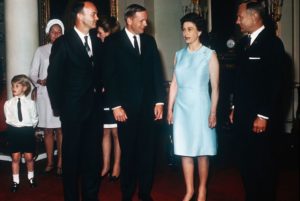 La reina junto a los astronautas. Fuente: Bettmann/Getty Images.