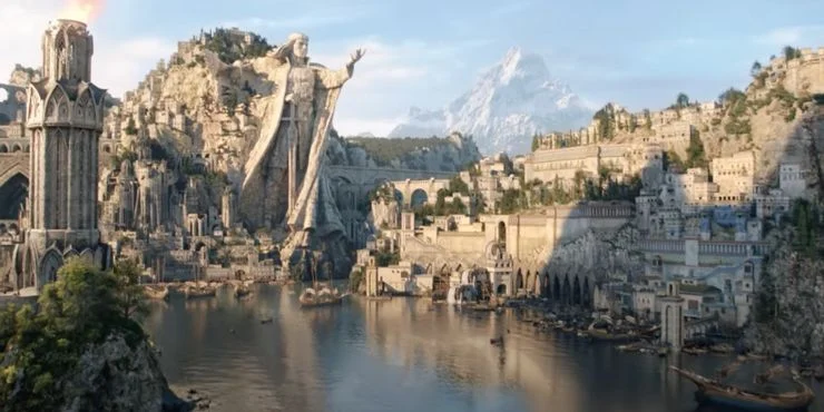 Pero esto definitivamente no es Gondor y es más probable que estemos viendo el país insular de Númenor, la civilización humana cuyos sobrevivientes fundaron Gondor.