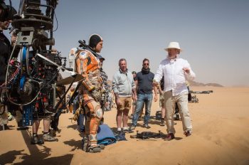 On location in Jordan, Ridley Scott directs Matt Damon, in THE MARTIAN.