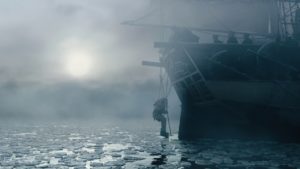 El trabajo de cámaras y de fotografía en The Terror realmente deja sin aliento. Los enormes barcos encallados en el hielo, el mismo paisaje del ártico, como un gran desierto blanco, las auroras boreales, todo está manejado con una excelencia que hace de esta serie una obra maestra.