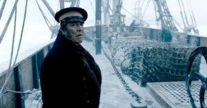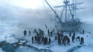 The Terror es de esas ficciones que se cocinan a fuego lento. Al contrario de los productos prefabricados a los que los fanáticos del género se enfrentan habitualmente en la pantalla grande, aquí se propone un desarrollo profundo del drama de la supervivencia. Los conflictos de poder y las enemistades son cruciales para el devenir de la tripulación y la serie se encarga de ir desglosando capa por capa cada uno de ellos. La principal discusión tiene lugar entre dos pesos pesados como son el oficial Francis Crozier (Harris) y Sir John Franklin (Hinds), capitanes de los barcos Terror y Erebus respectivamente. Estos experimentados exploradores ocultan una antigua rivalidad que se ira develando a partir de una serie de flashbacks situados en las vísperas de la misión.