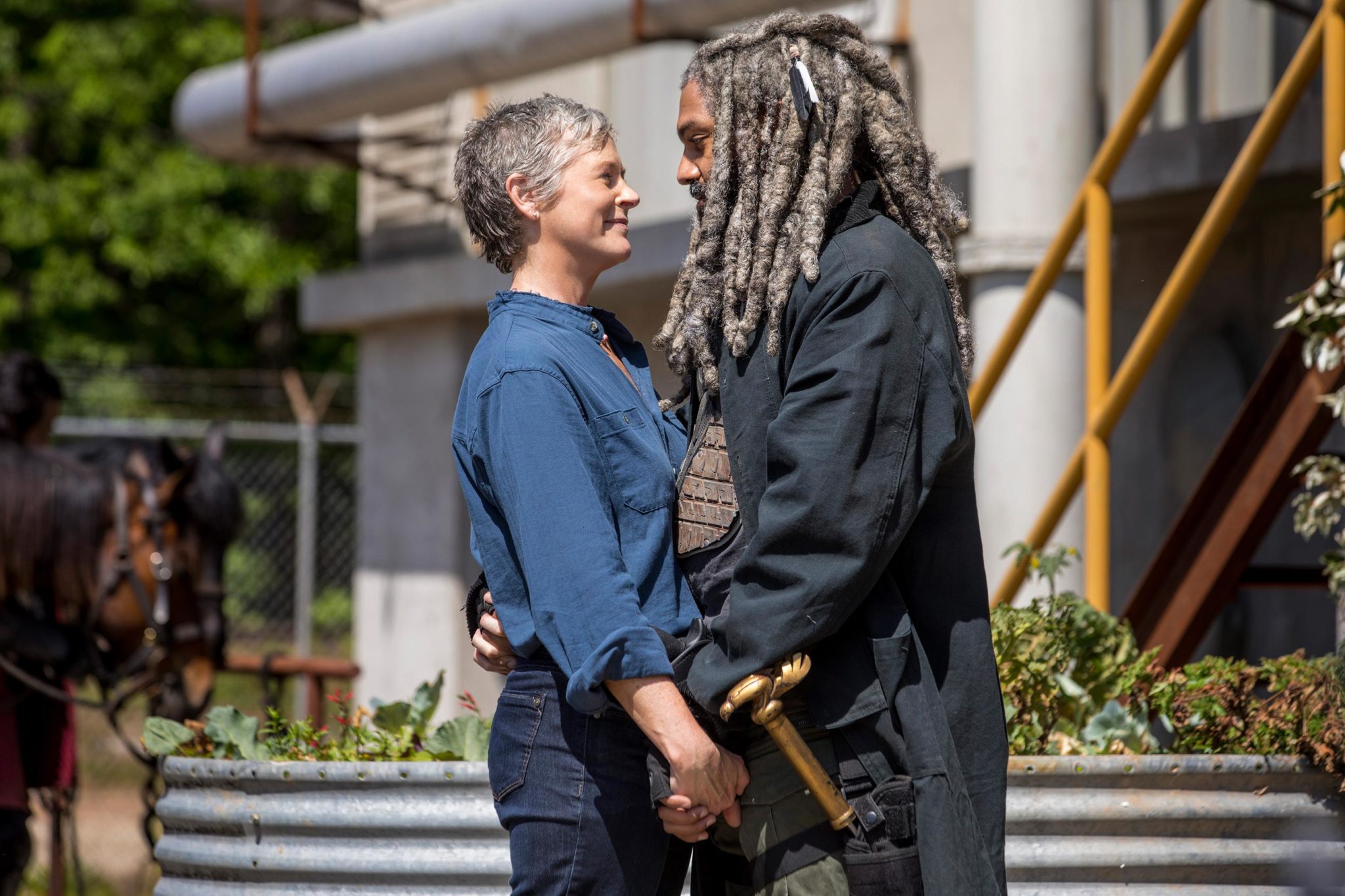 Sin embargo, la mejora más grande de The Walking Dead es un mayor enfoque en los personajes principales y sus relaciones. Con la guerra terminada, la serie puede pasar tiempo en escenas de personajes que solo hablan, compartiendo sus sentimientos en conversaciones honestas y abiertas. Estas escenas son un recordatorio de quiénes son estos personajes y qué significan entre sí, y por extensión, qué significan para los espectadores; sin ellos, la serie se convierte en un grupo mal definido de personajes que intenta matar a otro, que, como han demostrado las temporadas pasadas, se vuelve repetitivo y aburrido muy rápido. O sea, antes hablar no servía, se necesitaba acción concreta. Ahora los diálogos reforjan al esqueleto del show.
