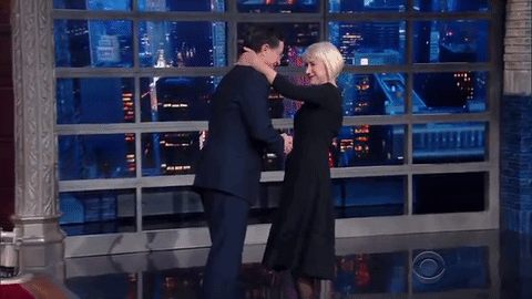 Helen Mirren no le dio tiempo a Colbert ni de advertir al público que ya estaba construyendo una nueva novela romántica.