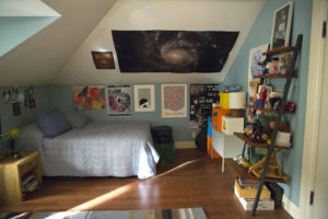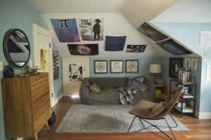Por ejemplo, la recámara de Clay es un ático y desde su cama puede ver un techo plagado de todas las cosas que lo han influenciado.