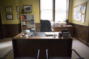 La oficina de Mr. Porter fue moldeada a partir de la propia experiencia de la diseñadora, quien se inspiró en sus días escolares.