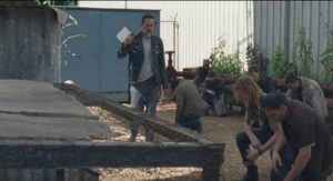 Una escena que tal vez pasó desapercibida, pero que a las claras marca el tono del liderazgo carismático de Negan, es la que vemos en el adelanto cuando toda su gente se arrodilla a su paso.