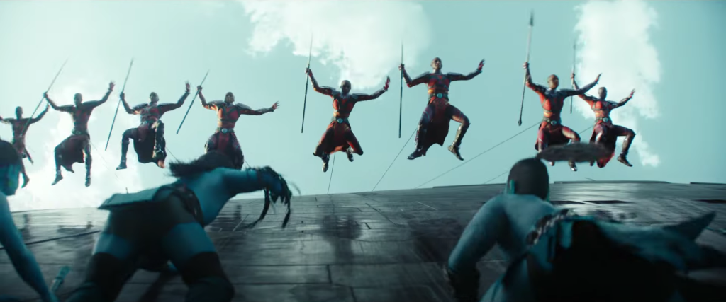 Shuri (Reina de Wakanda mientras Black Panther trabajaba con los otros héroes de Marvel), lideró una invasión en Atlantis. Aquí puede ser que el gobierno esté involucrado en el enfrentamiento, puesto que Everett K. Ross aparece en el trailer.