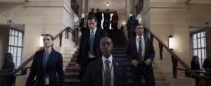 Fury después visita a Rhodey y le pregunta qué tan bien conoce su equipo de seguridad, anticipando que la infiltración Skrull ya está en marcha y que no se puede confiar en nadie. El show seguramente se conectará con Armor Wars.