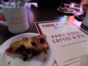 Para celebrar el estreno del revival en Showtime, del cual todavía no podemos asegurar que sea un éxito, la gente de Flavorpill y BBQ Films unieron fuerzas para recrear la atmósfera del pueblo de Laura Palmer y compañía en un bar de Brooklyn (New York), donde se sirvió auténtico café y pie de cerezas, mientras personajes de la serie como Audrey Horne (¿¡dónde diablos está!?) se aparecían en cada uno de los ambientes.