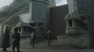 Sí, el primer episodio de la nueva temporada de Game Of Thrones, titulado Dragonstone, tuvo un momento clave, sobre todo para los fans de la serie oriundos de México: al llegar a destino, Daenerys accede al camino hacia el castillo, el mismo que es vigilado por dos grandes esculturas que hicieron recordar a las que se encuentran en el Templo de Quetzalcóatl, en Teotihuacán.