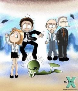 X-Files es tan pero tan de culto que se merece ser homenajeada de todas las maneras posibles. Y no es una falta de respeto que sean caricaturizados como los ejemplos que dejamos debajo, todos clásicos… ¡ES TODO UN HONOR!