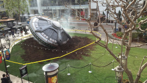 48 horas antes del estreno de la serie e igual que en España, Fox USA estacionó en The Grove, uno de los malls más importantes del ciudad,  un lindo OVNI. Tardaron algo así como 18 días en construirlo y efectivamente ha sido impactante.
